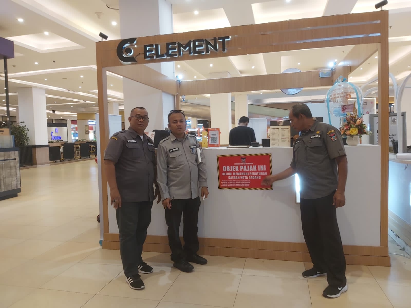 Dipimpin Kabid Pengendalian dan Pelaporan Bapenda Padang, Ikrar Prakarsa, Tim Bapenda Padang melakukan penempelan stiker pemberitahuan kelalaian mematuhi Perda nomor 3 tahun 2011 kepada 3 Wajib Pajak yang berada di Transmart Padang.