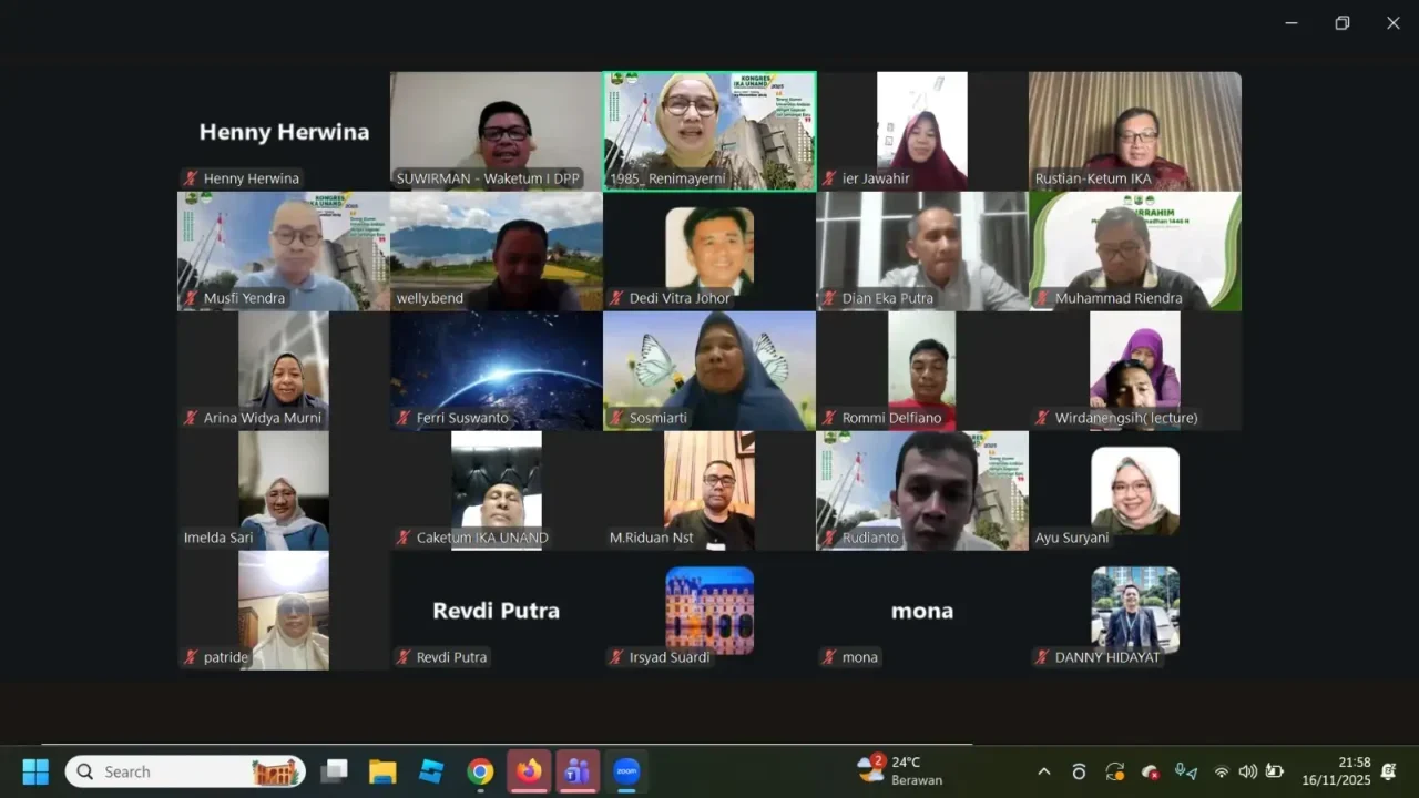 “Setelah mempertimbangkan banyak hal, kita sepakati bahwa Kongres VII IKA Unand 2025 dilaksanakan di ZHM Premiere Padang pada Sabtu (29/11) mendatang,” kata Penanggung Jawab Kongres yang juga Ketum DPP IKA Unand Periode 2021-2025. Sejumlah kesepakatan juga berhasil dicapai dalam rapat via Zoom dipimpin Ketua SC Prof Reni Maryeni itu.