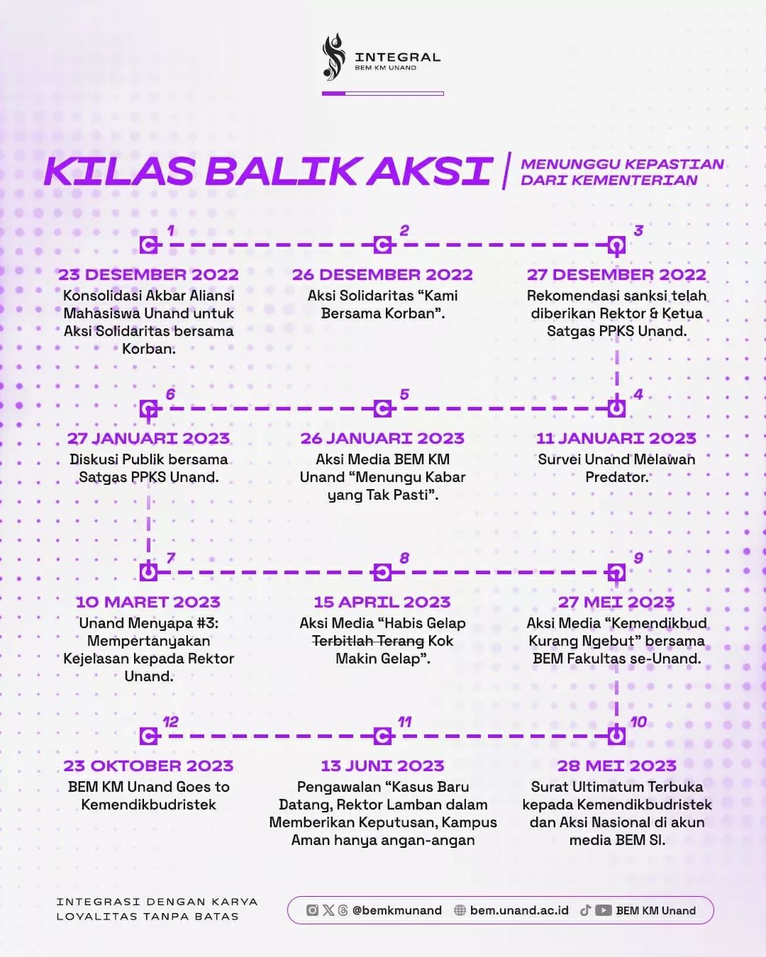 “Dan juga akan menimbulkan rasa aman bagi mahasiswa yang berkuliah di Universitas Andalas karena salah satu kasus yang dilakukan oknum KC tersebut belum menemukan titik terang sampai saat ini. Pelaku masih berkeliaran bebas di lingkungan kampus,”tambah Fajar Septian, Menteri Koordinator Pergerakan melanjutkan.
